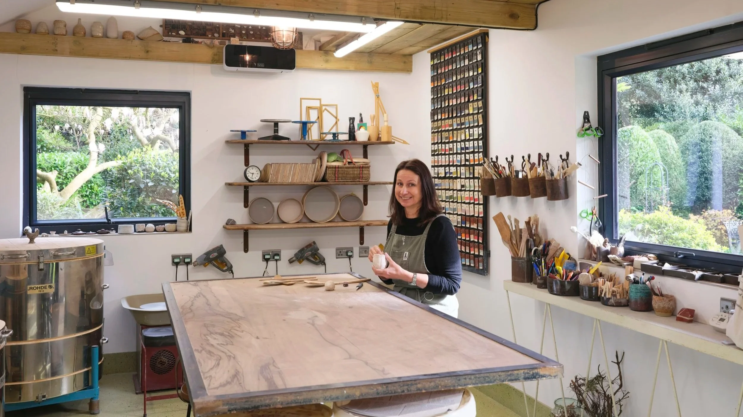 The Ugly Barn is a small, well-equipped pottery studio in the heart of Ditchling. It’s a quiet place to work either throwing or hand building, at your own pace, with guidance on hand when you need it. Studio sessions are available for experienced potters, alongside some one-to-one and small group tuition for those starting out or looking to develop their practice.